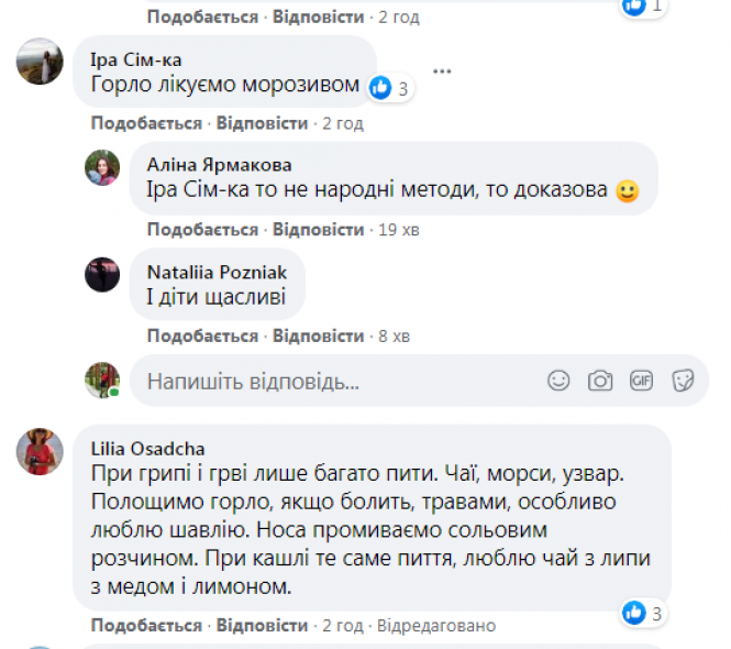 Також одна із тернополянок у відповідь на наше питання написала, що горло завжди лікує морозивом. Чи безпечно це читайте у коментарі сімейного лікаря, а зараз повернемось до інших народних методів лікування.