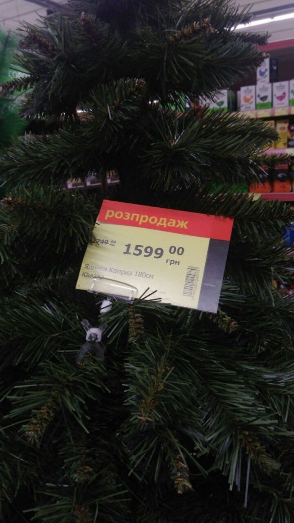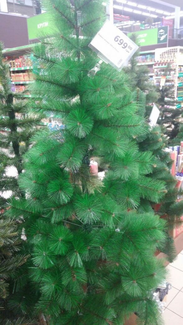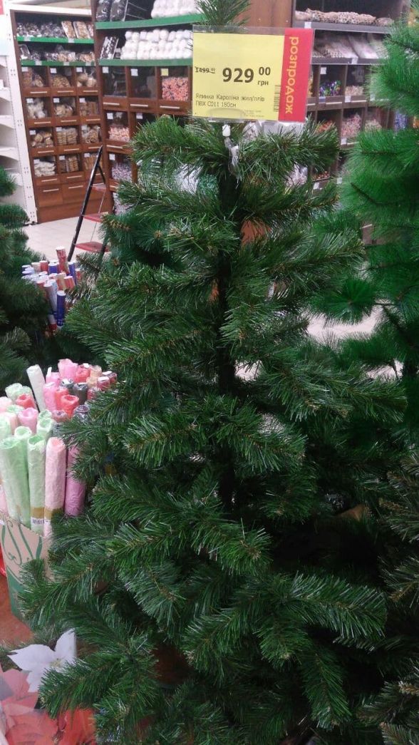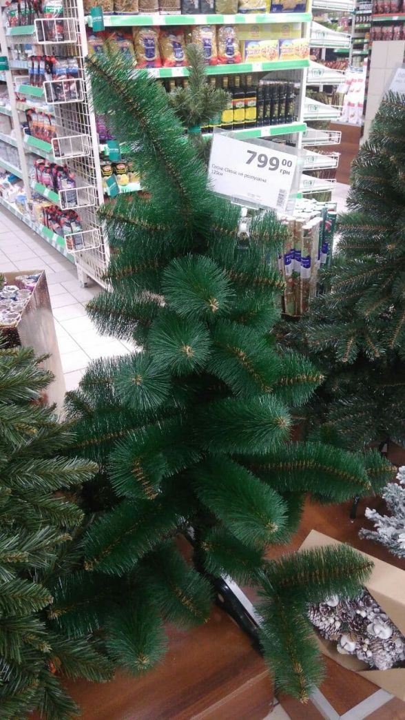 Також є штучні «сосни». У них голки з тонких пластикових ниток. Вони також коштують в 600—700 гривень за дерево, висотою 180 сантиметрів.