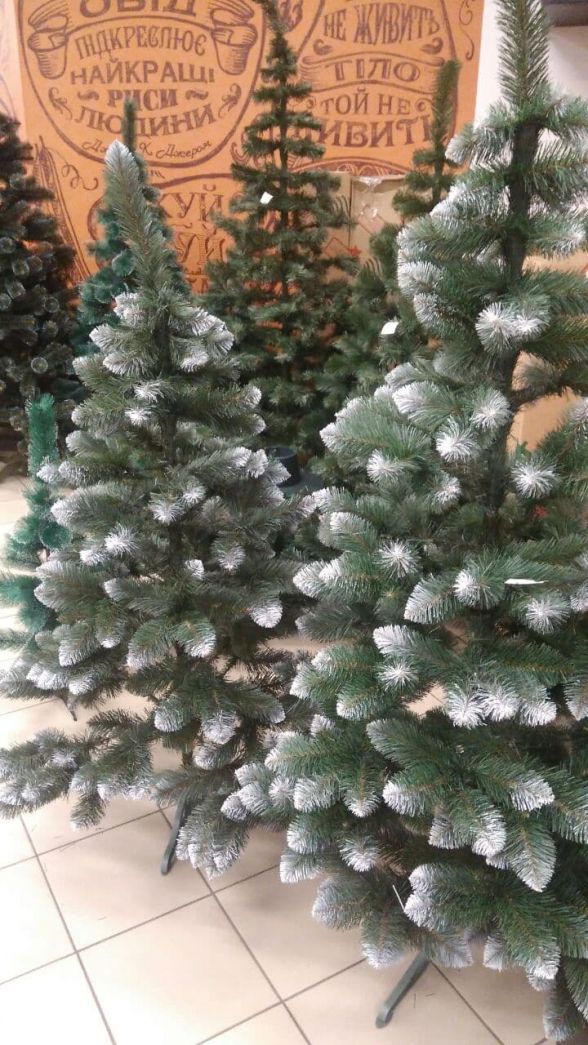 — Такі вже кілька років продаються, раніше були лише ПВХ, — каже продавець пан Ігор. — Цього року з’явилися зі спеціальним напиленням, яке на вигляд, як сніг. Вони дорожчі, ніж звичайні.За розмірами ялинки з литої хвої — від 150 і до 250 сантиметрів. Вищі також є, але тільки під замовлення, бо вони коштують від 10 тис. гривень.