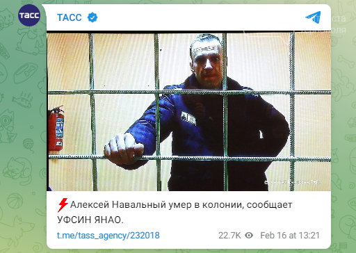 "Засуджений Навальний А.А. після прогулянки відчув себе погано, практично відразу знепритомнівши. Негайно прибули медичні працівники установи, було викликано бригаду швидкої медичної допомоги. Проведено всі необхідні реанімаційні заходи, які позитивних результатів не дали. Лікарі швидкої медичної допомоги констатували смерть засудженого", – йдеться у повідомленні Федеральної служби виконання покарань рф .
