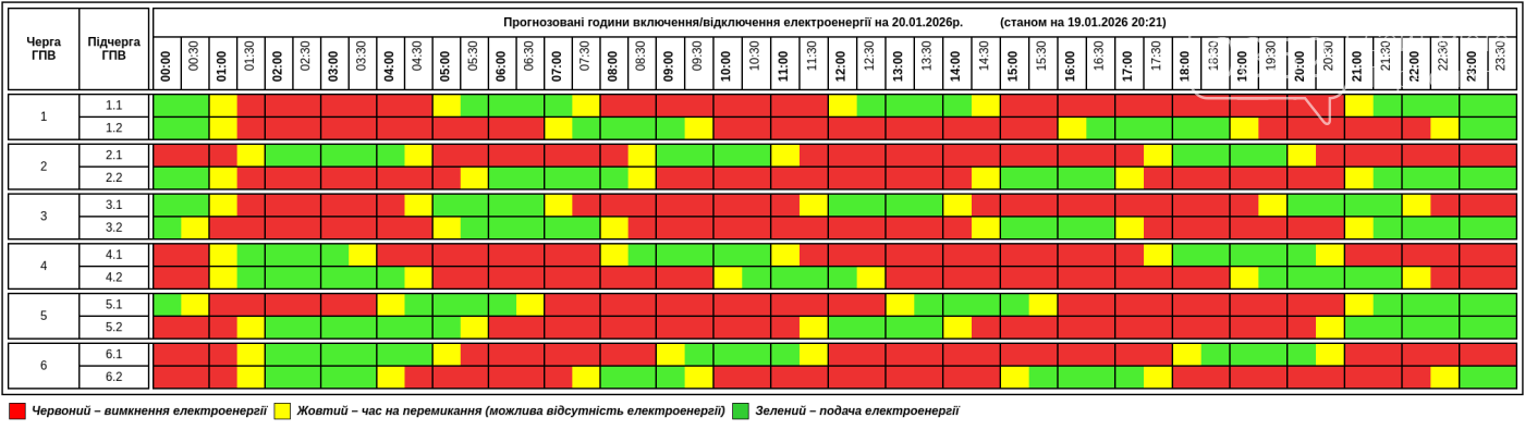 Енергетики оприлюднили прогнозований графік погодинних відключень електроенергії на 20 січня.