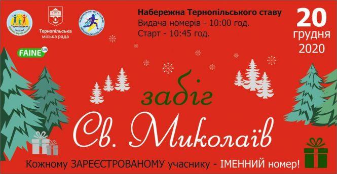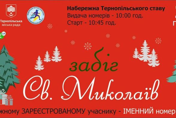 Тернопільський міський центр фізичного здоров'я населення запрошує тернополян та гостей міста приєднатися до святквого забігу, який відбудеться 20 грудня на набережній Тернопільського ставу.