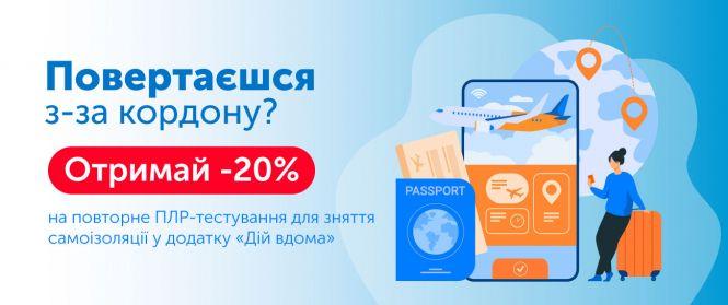 - На постійній основі діє знижка 20% на повторне ПЛР-тестування;
