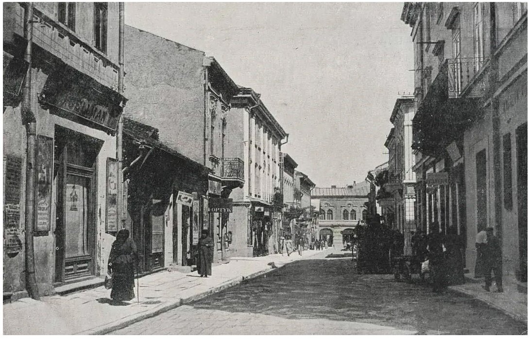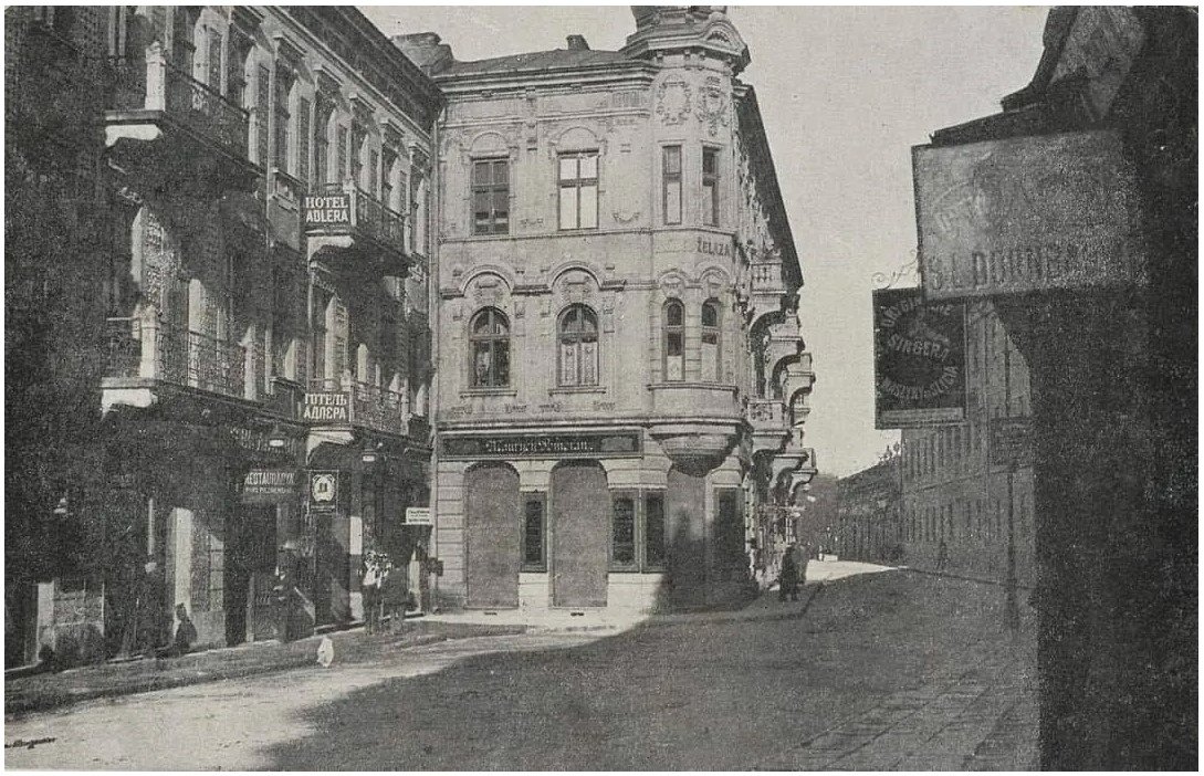 Цікавим фактом є те, що малювання вивісок було окремою професією. На фото також видно поворот до Пасажу Адлера, де колись діяли цукерня і кав'ярня, а також розташовувався одноповерховий Подільський банк. Всі ці елементи створювали унікальну атмосферу міста, сповнену як повсякденного життя, так і величних споруд.